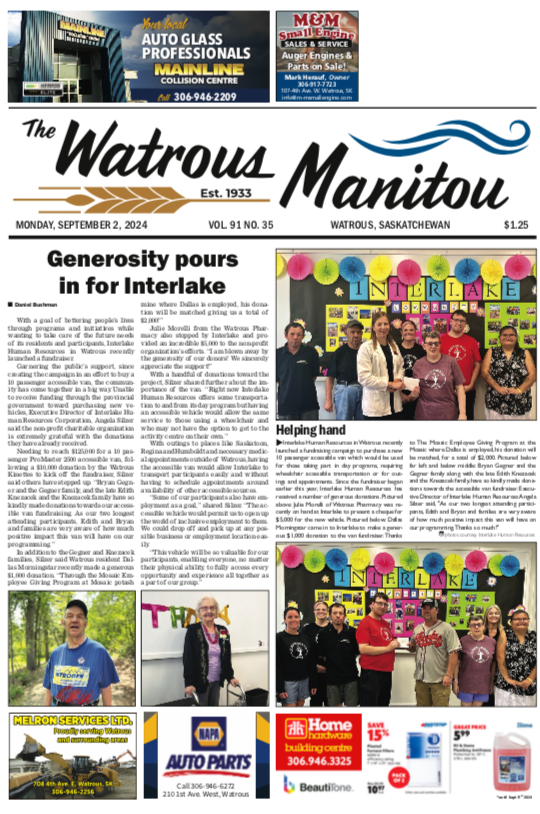 Read local news from our award-winning publications, The Watrous Manitou and Lanigan Advisor.