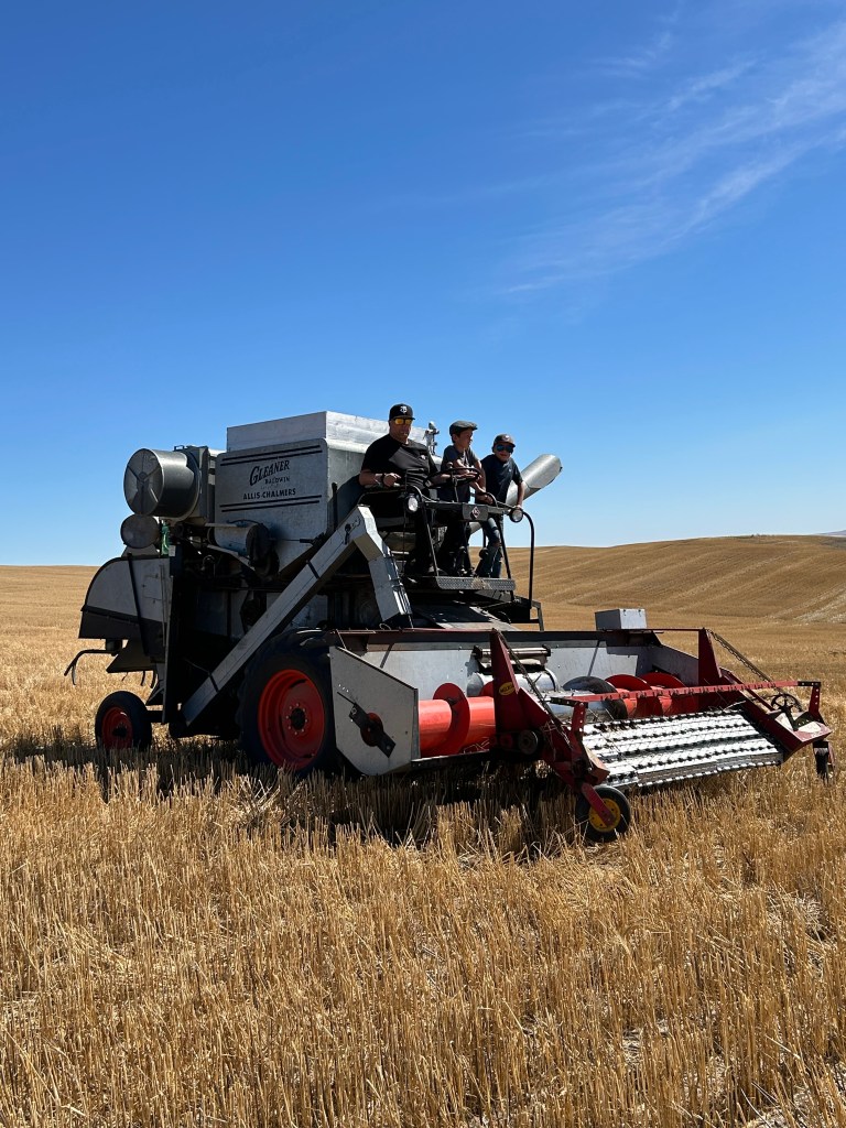 With family members as young as two and as old as 94, everyone had a turn to ride on a combine including Candace’s husband. “Tom said he enjoyed driving the old combines because it really puts into perspective how far farming has come and how much our new machines can actually do compared to the ones we used for our old-fashioned harvest.”