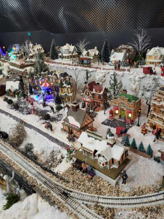 The pair both assist with engineering the Christmas ornament balls on the tree at the end of main street: cutting, sanding, and writing for the season greeting board.