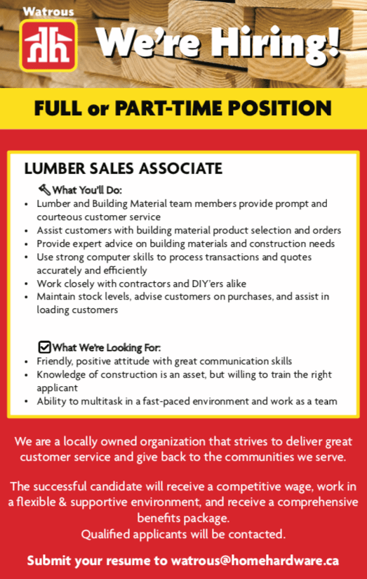 To include your help wanted in this section and in the newspaper, place a display ad by contacting the Lanigan Advisor: twmadvisorsales@gmail.com or 306-946-3343