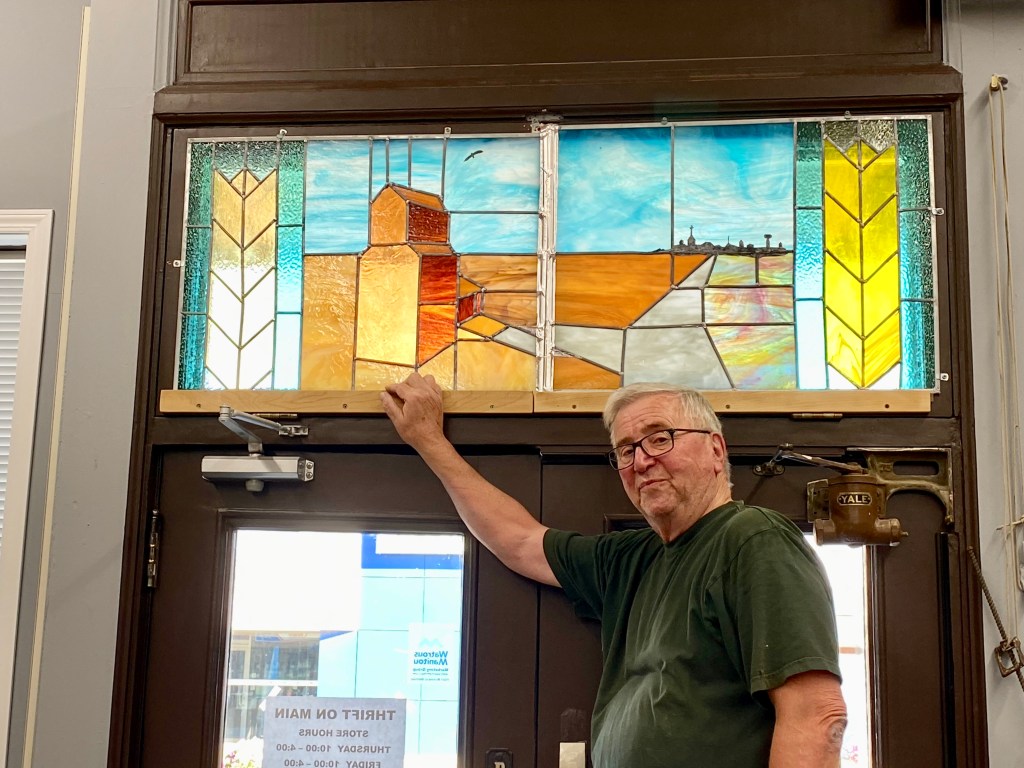 It has been that community support experienced on a number of levels which has really allowed Thrift On Main to be successful since its inception. As part of that, Upshall shared a recent example of former Watrous resident Jim Coulter’s desire to create a stained glass piece to go above the main doors of the building. “He wanted to do that for us and we said, absolutely. He had a plan in mind for a rural scene and recently came out to install the piece. It looks great!”